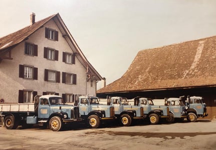 In den Glanzzeiten wieherten in der Scheune an der Bergstrasse gegen 20 Pferde, 1952 nur noch zwei, von denen man sich damals auch noch trennte. Scheune und Stallungen wurden 1990 zugunsten einer grossen Neuüberbauung abgerissen.